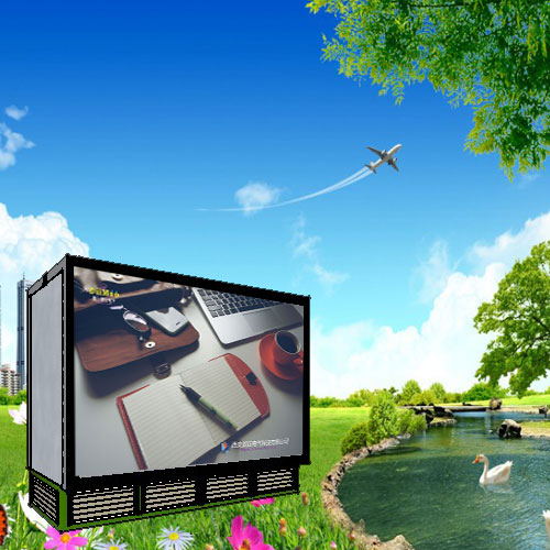 广告灯箱式的户外开关设备,开关设备的保护外壳采用广告灯箱式结构,灯箱外壳的两门可角度打开,并有气动弹簧支撑定位,便于开关设备操作和维护. 灯箱设有隔热层,具有良好的隔热作用. 灯箱外壳的两面为广告板,采用体积小、光源均匀的LED发光元件.广告灯箱与开关设备的门锁独立设置,灯箱维护不影响开关设备运行.灯箱外壳设有声光报警装置,受到外界破坏,可发出报警信号. 双层门结构,防护等级达到IP34,第二层为仪表门,确保灯箱式外壳被破坏以后,低压柜仍然达到一个完整独立的户外低压产品的保护水平。地埋式箱式变,隐藏在灯箱外壳中的风机可以自动对预制式箱体内进行排风和送风来降低温度.