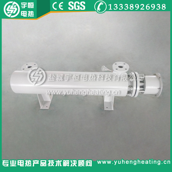 气体加热器是主要对气体流进行加热的电加热设备。气体电加热器的发热元件为不锈钢电加热管,加热器内腔设有多个折流板(导流板),引导气体流向,延长气体在内腔的滞留时间,从而使气体充分加热,使气体加热均匀,提高热交换效率。气体加热器的加热元件不锈钢加热管,是在无缝钢管内装入电热丝,空隙部分填满有良好导热性和绝缘性的氧化镁粉后缩管而成的。当电流通过高温电阻丝的时候,产生的热通过结晶氧化镁粉向加热管表面扩散,再传递到被加热气体中去,以达到加热的目的。