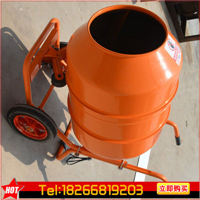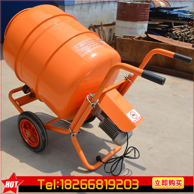 移动式混凝土搅拌机 结构小巧,但安装的减速机强劲有力,可搅拌各种干料,湿料,混合料,粉碎后的草料。每桶干料100公斤,湿料150-200公斤,从投料,加水到搅拌均匀只需5分钟,每小时可搅拌1000公斤以上。完全解决了中小型饲养农户的用电难,搅拌难,成本高等问题。