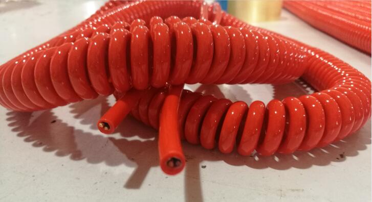 扬州维尔利生产多芯VOLI电动工具弹簧电缆拉伸3-5米弹簧线是小圈多芯小平方螺旋电缆,有的会在尾部安装尾管加强电缆抗弯折也可以根据客户的要求定制生产。
