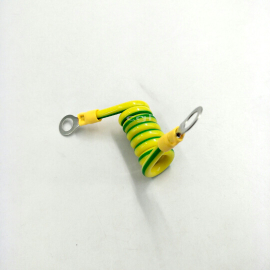 黄绿双色螺旋电缆线1.5 2.5也叫黄绿接地弹簧线,一头是接铜鼻子,或者两头都接铜鼻子。不同的平方数对应的铜鼻子尺寸不一样