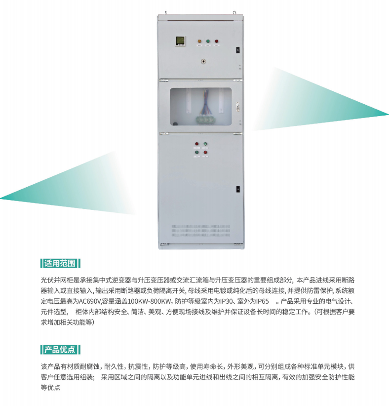 总之,光伏并网柜作为光伏发电系统的关键设备,具备重要的作用。通过不断的技术创新和应用拓展,光伏并网柜将进一步提升光伏发电系统的安全性、可靠性和经济性,推动清洁能源的发展和应用。