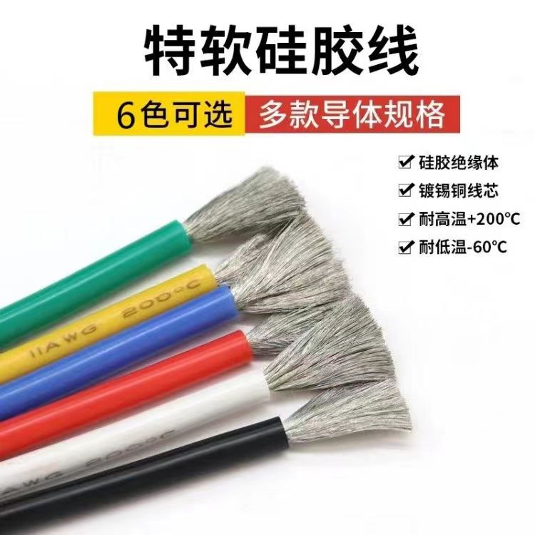 耐高温200℃硅胶电线 电池链接线,硅胶电线 高温线 ,超软耐高温硅胶线15 14 13 9 8 7 6 4 2AWG硅胶电缆 ,纯铜镀锡铜,国标线,耐高温200度低温-60度,特软