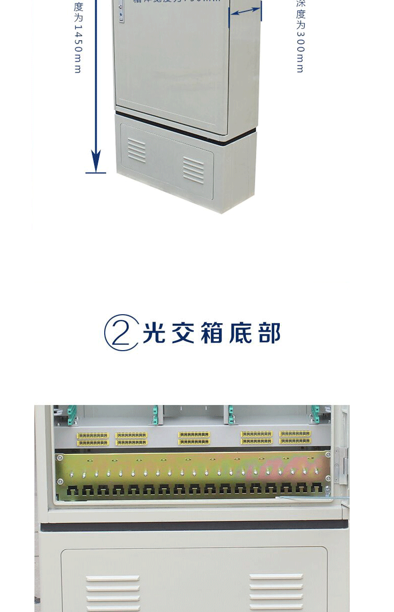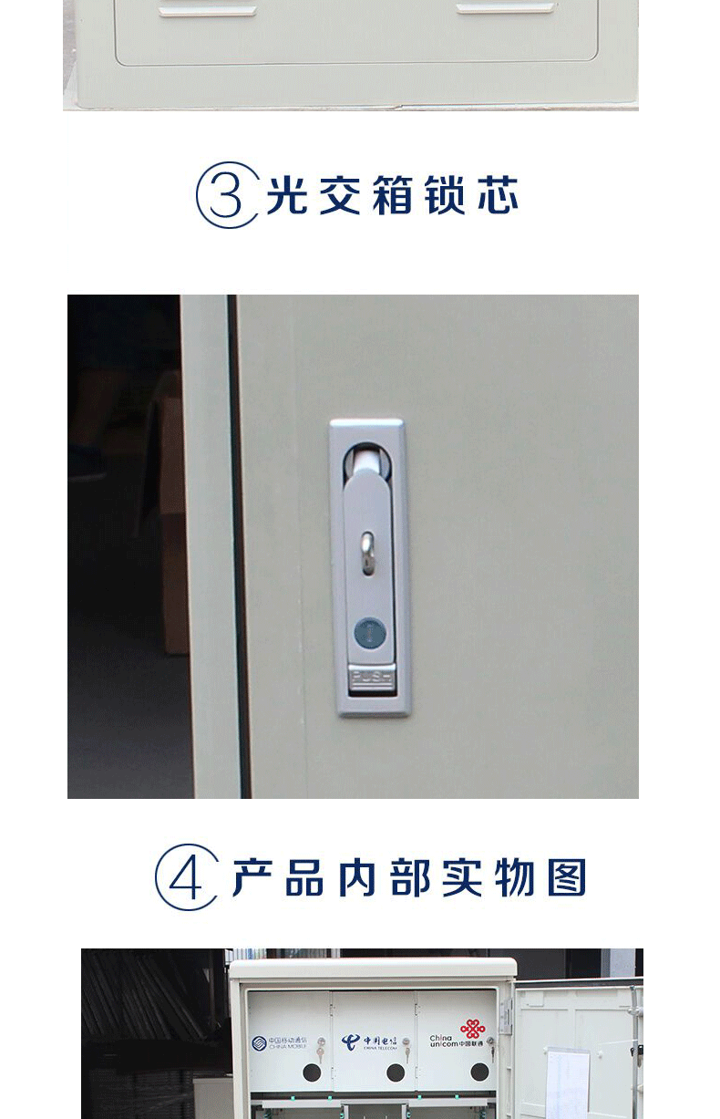 光缆交接箱是室外光缆接入网中主干光缆与配线光缆节点处实现室外光纤配线的设备,可以实现光纤的直通、盘储、和光纤的熔接、调度功能。可室外落地、架空安装两种方式。