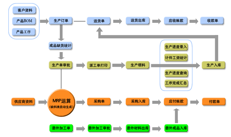 · 生产流程规范化:《信华ERP生产管理软件》满足企业从接单、下生产单、生产审批、物料消耗采购、材料领用、生产过程、生产完成入库、送货以及所产生的应收应付业务和所有管理报表,进行全过程的规范化管理。