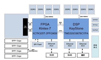 1.DSP与FPGA:SRIO x4@5Gbps/lane;