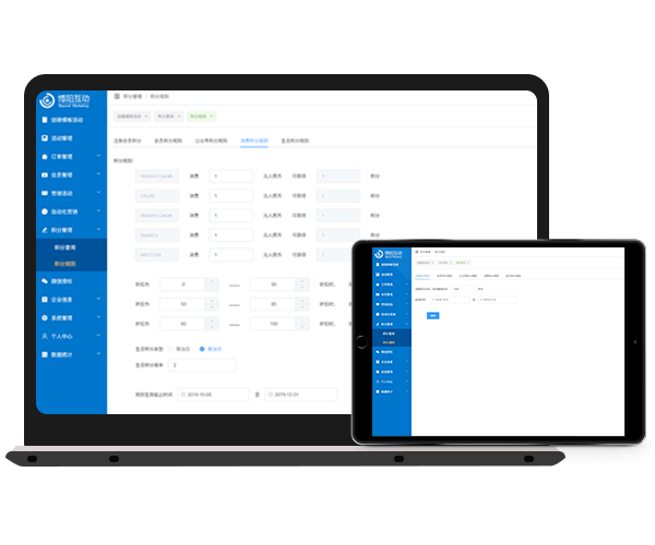 博阳SCRM,可与博阳小程序商城、积分商城高度整合,将积分运营、会员卡整合到小程序中,充分利用小程序的优点,不但能更快速地启动移动电商,而且融合线上线下,支持多层级业界核算,实现裂变营销和销售,一店一商城,适合直营店与加盟店,复合运营模式。
