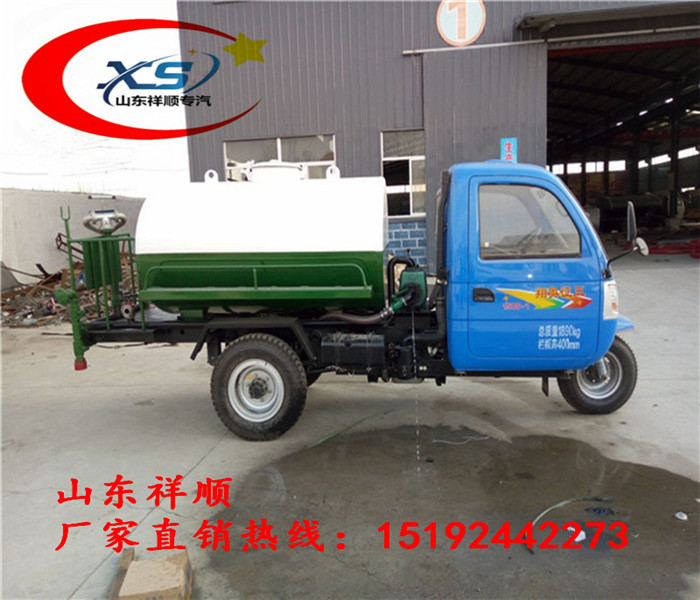 小型洒水车概念小型三轮洒水车罐体厚度为十足十量4MM,自吸高度大于等于7m,前冲后洒射程大于14米,扬尘大于22米。程力威牌消防洒水车采用上海合资消防泵,扬尘最大可达到50米,几乎相当于一辆消防车。一、小型三轮洒水车概念小型三轮洒水车又称为喷洒车、多功能小型三轮洒水车、园林绿化小型三轮洒水车、水罐车、运水车小型三轮洒水车适合于各种路面冲洗,树木、绿化带、草坪绿化,道路、厂矿企业施工建设,高空建筑冲洗。具有运水、排水,应急消防,洒水、压尘、高、低位喷洒,农药喷洒、护栏冲洗等功能。