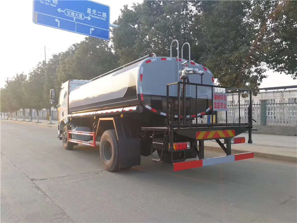 罐体采用机器压板一次性成型技术,采用先进旋边机,罐体包罐机工艺保证了罐体制作的精度和美观。全国独有烤漆工艺,防腐除锈,多层底漆、面漆喷涂。 功能齐全,灌溉、喷洒、道路养护,喷雾降尘、高炮喷射等,采用优质水泵,合理设计水路管道,气控取力器,作业能力强;加大罐体设计,提高了车辆的使用效率。