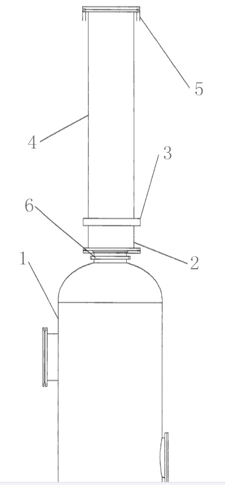 泄爆导爆装置:包括泄爆桶(1)、泄爆片(2)、标准变径管(3)、波纹管软连接(4)、导暴管(5)、钢结构支架(6)和钢平台(7)