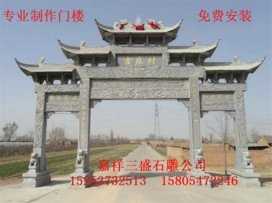 村口古建牌坊|石雕山门|古典门楼