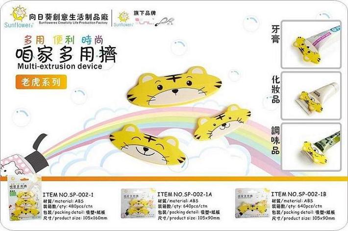 很卡通很实用的咱家多用挤出来了,有老虎,猪猪,青蛙,KT等卡通造型哦,咱家多用挤分大中小三种型号,有家庭装,亲子装,单个装三种。可用于儿童牙膏,成人牙膏,化妆品,调味料等等.