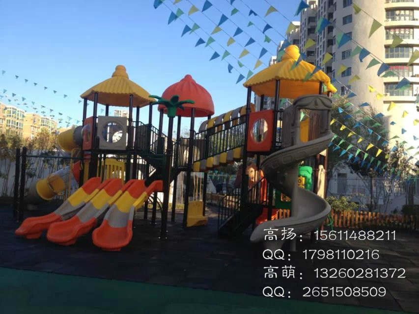 户外大型玩具可以选用安全地垫及EPDM地垫两种产品来作为铺地使用,从而降低小孩在玩耍时跌落地面的力度,起到减震和保护作用,可以根据滑梯的平台高度来选择相适应厚度的安全地垫,地垫越厚,安全系数越高。