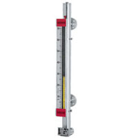 根据浮力原理,浮子在测量管内随液位的升降而上、下移动,浮子内的永久磁钢通过耦合作用,驱动红、白色翻柱翻转180°,液位上升时翻柱由白色转为红色,下降时由红色转为白色,从而实现液位指示。