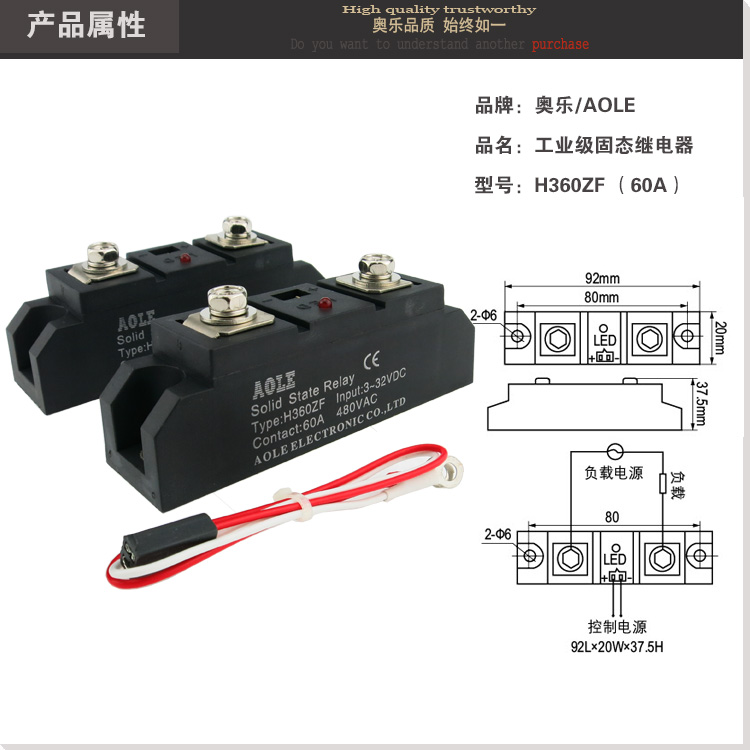 直销奥乐DC-AC工业级模块60A交流固态继电器H360ZF