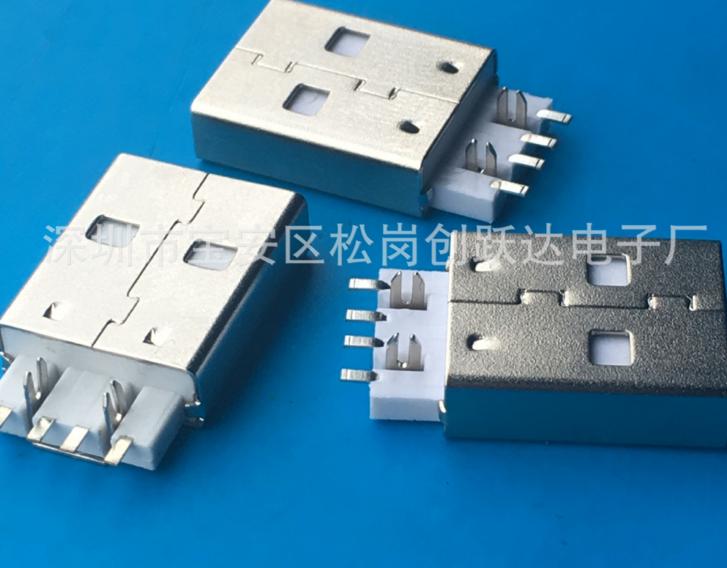 USB A公4P鱼叉式贴板鱼叉脚插板白胶铁壳