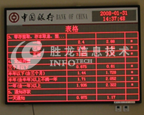 1.取代传统的同步实时显示屏及普通异步显示屏。各营业网点LED显示屏通过银行网络(接口RJ45)与控制中心计算机连接,控制中心计算机自动从指定网页上下载更新基金、利率、汇率等动态数据并实时发布、显示在所有营业网点LED显示屏上。
