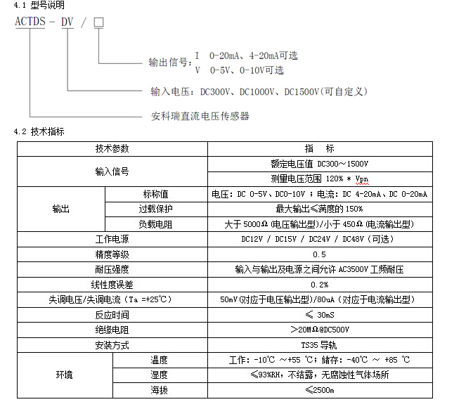 ACTDS系列直流电压传感器是一种利用光电隔离原理将被测直流电压转换成将原边电压转换成与原边电压成比例输出的直流电流或直流电压信号的测量模块,原副边之间高度绝缘,具有高精确度、高线性度、高集成度、体积小结构简单、长期工作稳定且适应各种工作环境的特点。广泛地应用在电力、石油、煤矿、化工、铁路、通信、楼宇自控等行业的电气设备的系统控制及检测。