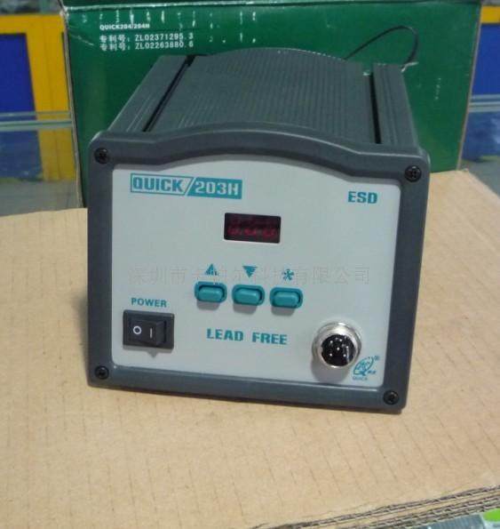 QUICK203H数显无铅焊台超过20分钟不使用烙铁时,本焊台自动降温至200℃,当再次拿起烙铁时温度迅速回升至原设定值,亦可延长烙铁头寿命。