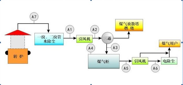 本系统主要由取样单元、预处理单元、分析单元、标定单元、控制单元几部分组成,本系统与升、降罩或引风机提供信号控制联锁,冶炼时连续监测转炉煤气中的CO、CO2、O2等气体浓度。