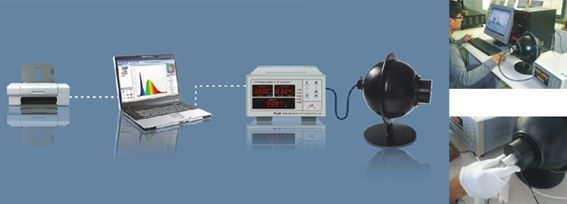 FLA7200快速光色电分析系统内置恒压恒流源、快速光谱仪、光度计于一体,配合积分球作为光信号接收器,与计算机相连后可实现单颗LED灯珠的光度、色度、电性能参数的测试,参数包括色品坐标、 相关色温、显色指数、色容差、峰值波长、主波长、色纯度、红色比、半宽度、光谱分布、光通量、光效等。