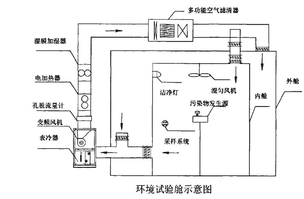 本试验系统包含实验室、空气循环装置、排气系统、加样采样装置、设备电器控制系统组成。