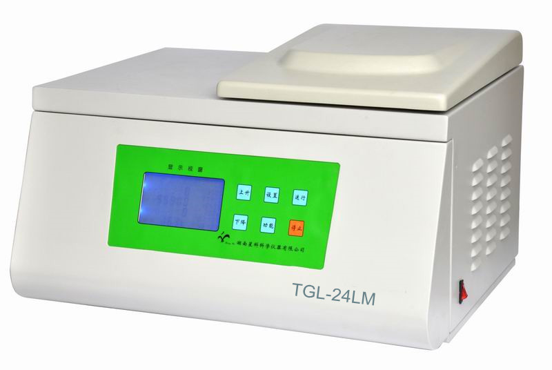 TGL-24LM 采用免维护无刷交流变频电机驱动、微机控制、液晶显示、全钢制结构、不锈钢离心室、门盖电子门锁双重保护。制冷系统采用高性能压缩机组,无氟环保制冷剂R404a、制冷/加热双回路控制,效率高、加热、制冷速度快、震动小。为您提供了简便的操作。您设定好运转参数,按相关参数键、设置键,设定转速、时间、温度、离心力。按启动键后仪器自动进入程序控制,该机支持离心力/转速互设,具有瞬时离心功能,并可存储多组自定义运行程序。仪器在运行中您可以修改运行参数。