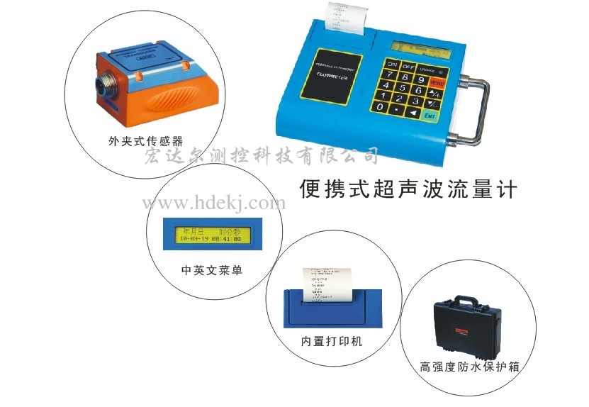 HD-TUF-2000P便携式超声波流量计带微型打印机,是用来测量封闭管路液体流量的,它的传感器是采用非接触、附着式的,这样就使安装简单易于操作。