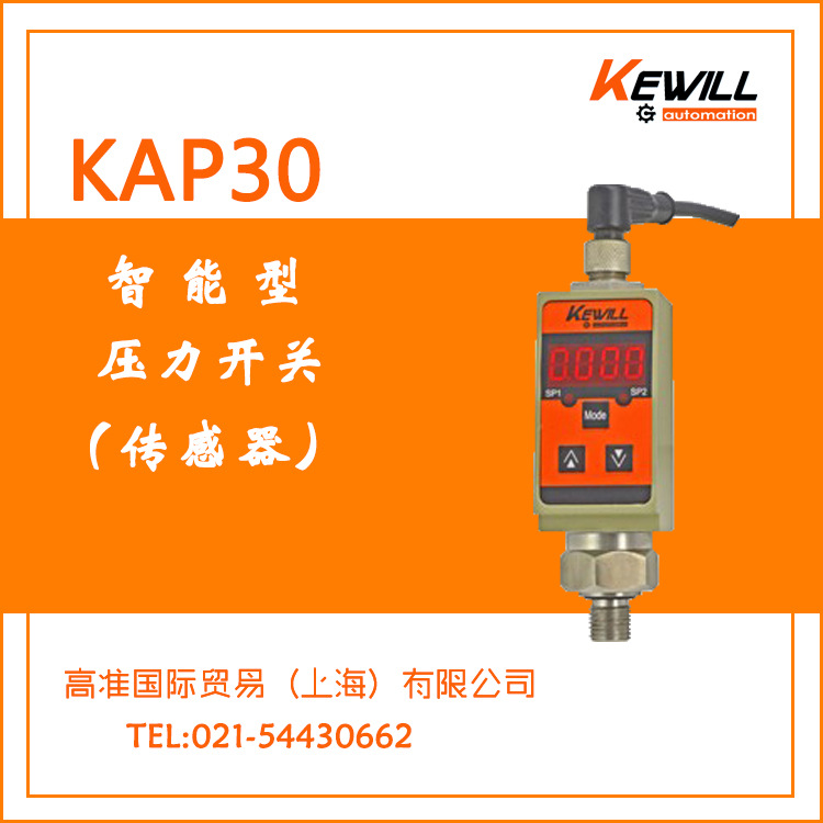 KAP30系列智能压力控制器是集压力测量,LED显示输出、控制于一体化智能数显压力测控产品该产品为全电子结构,前端采用带隔离膜充油压阻式压力传感器。