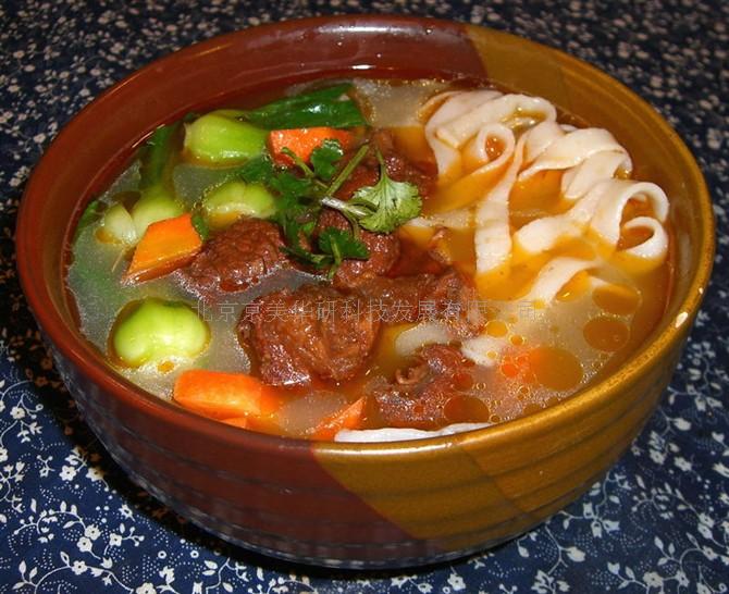 “果蔬营养带馅彩面”是把各种水果或蔬菜泥汁与各种口味的肉馅(猪肉馅、牛肉馅、羊肉馅、鸡蛋馅、海鲜馅等),同优质的小麦粉(或荞麦粉、玉米粉)、鸡蛋等原料进行科学配比,利用高科技化的专业带馅面条机而生产出来的系列营养带馅彩面,其天然的色泽来源于所添加的水果及蔬菜的原始本色,不含任何人工色素、防腐剂和化学添加剂,完全的纯天然色彩。