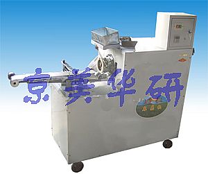 该机可生产大、中、小、粗、细、长短、多股型状任选的各种麻花,比手工制作可提高十倍以上,并可加入10%-30%杂粮(如玉米面),加工杂粮可提高营养价值,从而降低了成本,相同重量的麻花,比手工制作的膨大,本机操作简单,一般人员均可操作,是麻花生产厂、油炸食品店理想的致富产品!可以生产双色、3色或2味、3味的大、中、小麻花、多色麻花、多味麻花,该机自动压条、自动搓条成型, 本机可生产粗、细3、6、9股等多种麻花食品,花形美观漂亮。喷油器采用新式压缩机,噪音小,耗电量低;自动喷油,可使麻花股与股之间不会粘接到一块,油嘴喷出的油雾大小可调,按需要而定,有利于油炸起发。麻花的长短自由控制,任意调整,极大的提供高了生产效率和产品质量,操作简单,人人均可操作,是提供优质麻花打造品牌最理想的生产机。 二 、机器使用方法: 1、 开机前后先将齿轮和润滑部位加油(外部用黄油,内部用卫生油),开机后先看转的方向是否正确,再听机器有无异常声音。 2、 将切刀上刷上食用油,以免粘刀,麻花通过输送带上的切刀按所需长短用手按下即可切断,切断的同时将麻花的断头压扁,油炸时麻花断头处不 会散头。麻花切断后可通过输送带送入油锅内。 3 、安装模具时,先用食用油或水将模具侵一下,然后在安装到机器上。开机后,先将料切成满头大小的块,放进喂料斗内,再由喂料器自动送入,开始放料需要稍微慢些,当生产出的麻花光滑后,再多放料.停机后,用油布或塑料布将出口和喂料斗塞住,以免下次再生产时面凉干或堵塞,如长时间停机不生产时,将机器内的面淸干净擦上油,模具头拆下侵到油内,以便下次再用