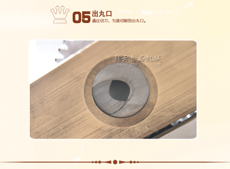 该款肉丸成型机采用304高级食品不锈钢制造,配置国标1.5kw纯铜电机,采用双速系统分别控制肉丸成型速度和下料速度,机身内安装有2个电动机,电机封装在不锈钢机身内,很好的降低了电机因进水之类的外力因素导致的电机质量问题。每分钟可以成型约90-500个丸子左右,成型速度可调,丸子表面光滑,圆度好。随机配有四套成型模具,分别是17mm、21mm、25mm、28mm,可以做四种规格的规格的肉丸。