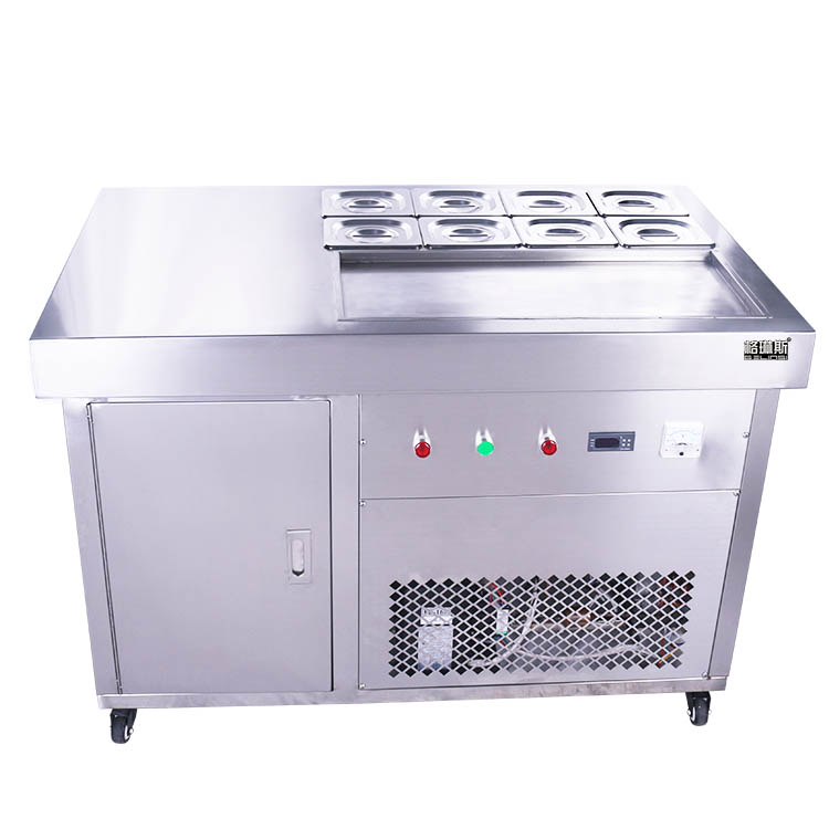 5.大型商用炒酸奶炒冰机使用蒸发锅全面积制冷技术,可以大量炒酸奶,完全能满足您的需求。