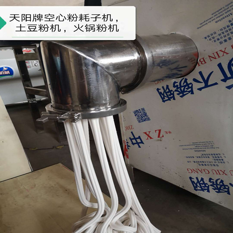 天阳玉米馇条机为机电一体化设计,性能稳定,干净卫生,安全卫生,操作简单,1~2人即可生产,省时省工,采用恒温蒸浆熟化成型新工艺,磨好的玉米糊经水浴箱热水蒸煮熟化,螺旋推进器推送挤压聚合而成,出机即熟,一次成型,无须下锅。天阳馇条机一机多用功能多,可以使用各种淀粉或面粉、米浆等,生产加工粉条,粉丝,粉皮,扁粉,川粉,肥羊粉,河粉,卷粉(肠粉)凉皮拉皮面皮、酸浆米线、酸浆馇条等,产品厚薄宽窄、粗细扁圆等规格可根据需要任意调整。