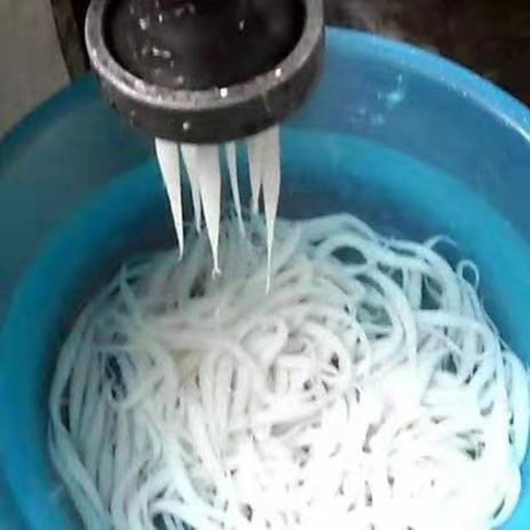 漏鱼(浆水鱼鱼,粉鱼,凉鱼,蛙鱼,凉宵,面鱼)是一种夏季应时小吃。无论是称谓的奇特,还是制形的精巧,都给食者以深刻的印象。曾有人写诗称赞:"冰镇刮条漏鱼窜,晶莹沁齿有余寒。味调浓淡随君意,只管凉来不管酸"。漏鱼并非是鱼或是跟鱼有关的食物,而是用地瓜粉或土豆粉熟化的半透明状物,因其长得像小鱼而得名 吃时洒榨菜,辣椒油,油炸的花生米,添加熬制的大料水,可以适当的放醋和糖水。入口就咨溜一下滑入腹中。口感清凉爽滑,四季皆宜。天阳漏鱼机由电热蒸箱,自动温控装置,原料推进器和出料头组成,采用220V电源2.2或3KW电机带动,电加热电子自动控温煮浆熟化成型,每小时生产40-50公斤漏鱼。天阳漏鱼机功能全产品多,更换不同的模具或机头可以生产凉皮、粉皮、东北大拉皮、酸辣粉、苕粉、肥羊粉、川粉、米豆腐、年糕、馇条、米线等,使机器生产不受季节限制,四季都有生意做。