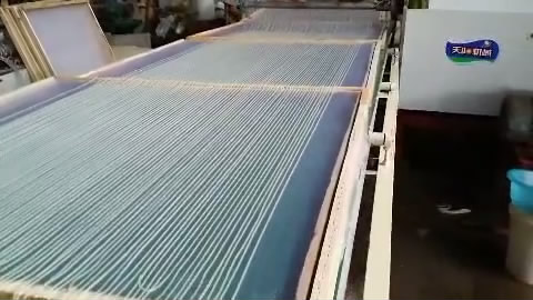 天阳不粘连米线米粉机的磨浆机,搅拌和浆机,米线米粉熟化成型机与物料接触部分均采用不锈钢制作,输送带采用食品级PVC材料,符合食品卫生要求。生产时,大米要先按要求浸泡,然后用磨浆机磨成米浆,再加入米线米粉熟化成型机中,经电加热电子自动控温煮浆熟化,绞龙推进挤压,通过特制的模头将成型的米线米粉平铺在丝网接条盘上,由皮带输送机输送至冷却地冷却老化后,即可出售鲜粉或晾晒后包装销售。