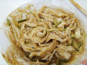 牛筋面是近年来新兴起的一种风味小吃。我公司生产的自熟式多功能牛筋面机,无需外界加热,就能使各种面粉自熟。可生产牛筋面、泡泡面、小麦冷面、四川凉面等多种风味小吃,夏天凉拌,冬天可爆炒。无论面粉多少,都可加工制作,1公斤干面粉可生产2.2-2.5公斤成品牛筋面,一公斤牛筋面的批发价在2—3元。广泛用于学校、机关、食堂,更适合于个体摊位使用。我公司免费提供生产配方,包技术,使用我们的机器和技术,可使您生产出当地质量最好的牛筋面。