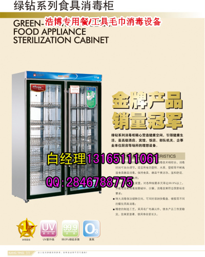 高科技远红外线与臭氧相结合的消毒技术,具有高效杀菌,消毒彻底等优点;专业设计应用于星级酒店、饭店、机关、部队、宾馆、饭堂、幼儿园快餐店等行业, 对餐饮业食具及用品进行高效的消毒保洁。特大消毒空间,适宜任何餐具碗筷的消毒,包括塑料、木质等不耐高温材质的餐具,消毒完的餐具、器皿干爽洁净,健康卫生;采用名厂元件制造,性能优良