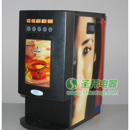 【机器介绍】:内置3个粉盒,可出3个单品热饮及2道混合饮料:如咖啡,奶茶,卡布其诺,鸳鸯奶茶等,外加开水功能。