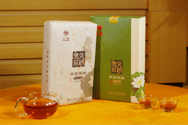 “久扬”牌荷香手筑茯砖茶,是以安化优质黑毛茶为主要原料,适量加入”荷叶“、”决明子“等中草药,经科学配方与纯手工加工而成的茶产品,该产品聚荷香、茶香于一体,增进了传统安化茯茶的食饮功效。因其经手工筑制,松紧度适中,茶砖内金花满布、花香四溢;加之系采用冷发酵与”七星灶“火焙等工艺,茶汤红亮、滋味醇厚,是一种深受广大消费者追捧的健康饮品。