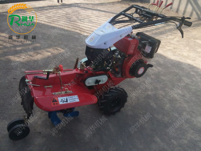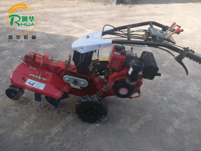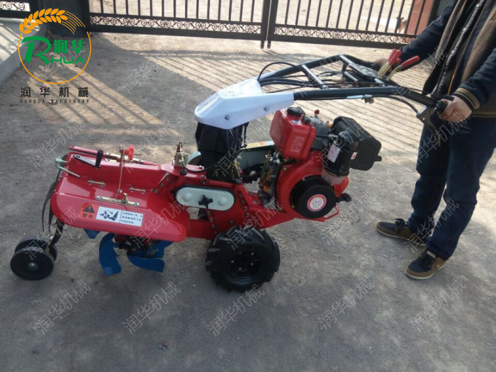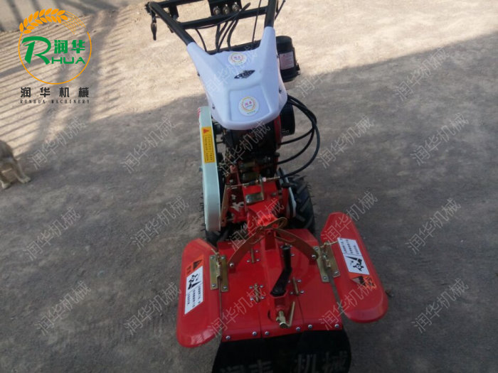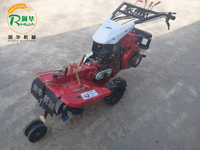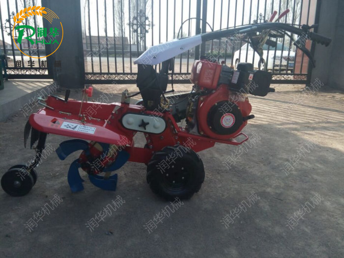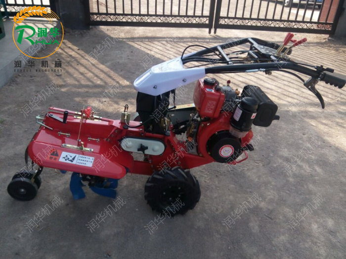 双轮田园管理机,它包括机架、可调高低扶手,机架上设有(风冷或水冷)柴油机或汽油机、机架和扶手上设置有变速箱,变速箱的输出轴上设置有能够沿轴移动的驱动轮或链轨.传动方式主要有:全齿轮传动、皮带传动、链条传动三种传动方式.该机具有重量轻,油耗低、相对功率大,结构紧凑、机动性强、操纵轻便灵活的特点。可爬坡、越埂、阶梯性强。广泛适用于平原、山区、丘陵的旱地、水田、果园、菜地、烟地的深旋耕、浅旋耕、犁耕。配上相应机具可进行旱地旋耕、水田旋耕、抽水、开沟、喷淋、喷药除草碎土等作业,还可牵引拖车进行短途运输,是大中型农机无法媲美的多功能田园管理机,工作稳定可靠、使用寿命长、维修方便等田园管理机特点。是进入农民家庭最理想的田园管理机。