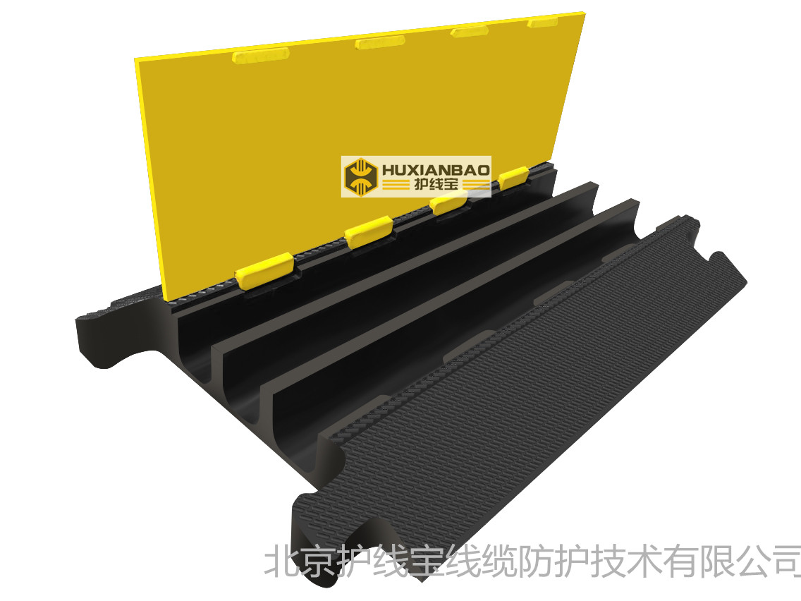 过线板头部凸出部分卡着另一块线槽板的尾部凹槽部分,相互卡住可以防止线槽板跟随车辆前行或后退,更好的保护电缆。另外线槽板虽为橡胶制品,有一定的柔韧性,但为了延长使用寿命,最好不要高距离抛扔。使用完毕后如需清洗,可用湿布擦拭完毕后,全部统一放在平整地面并正面叠放,防止底部变形,影响与盖板的贴合度。