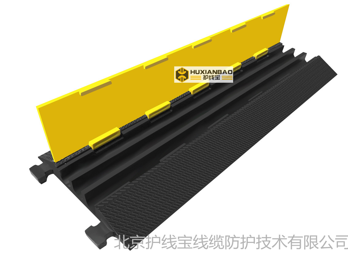 过线板头部凸出部分卡着另一块线槽板的尾部凹槽部分,相互卡住可以防止线槽板跟随车辆前行或后退,更好的保护电缆。另外线槽板虽为橡胶制品,有一定的柔韧性,但为了延长使用寿命,最好不要高距离抛扔。使用完毕后如需清洗,可用湿布擦拭完毕后,全部统一放在平整地面并正面叠放,防止底部变形,影响与盖板的贴合度。