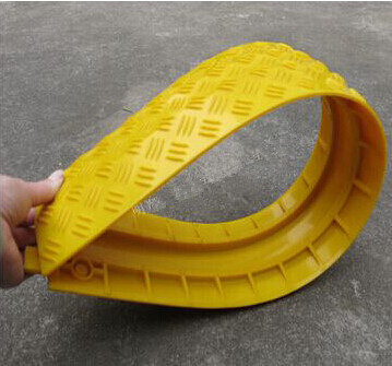 过线板头部凸出部分卡着另一块线槽板的尾部凹槽部分,相互卡住可以防止线槽板跟随车辆前行或后退,更好的保护电缆。另外线槽板虽为橡胶制品,有一定的柔韧性,但为了延长使用寿命,最好不要高距离抛扔。使用完毕后如需清洗,可用湿布擦拭完毕后,全部统一放在平整地面并正面叠放,防止底部变形,影响与盖板的贴合度。
