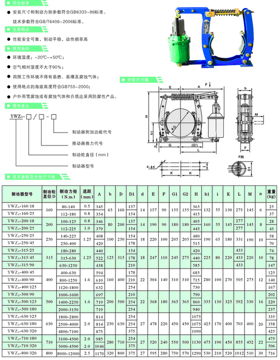 YWZ3系列液压块式制动器主要用于起重、运输、冶金、矿山、港口、建筑机械驱动装置的机械制动,具有制动平稳,安全可靠、维修方便、耗电少、寿命长、无噪音等优点。