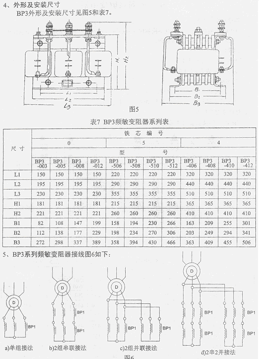 BP3系列频敏变阻器(以下简称BP3)适用于2.2-125KW,JZR系列绕线型异步感应电动机频繁操作情况下的启动,BP3常接与电机电机转子回路中,一般不另装短接装置。