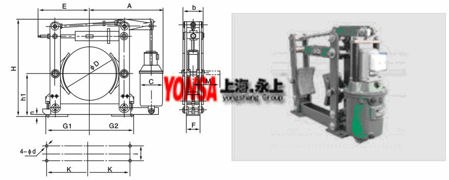 BYWZ-700/180防爆电力液压块式制动器刹车抱闸 一、产品简介 YWZB系列电力液压鼓式制动器广泛用于起重、冶金、矿山、港口、码头、建筑机械等机械驱动装置的减速或停车制动。 符合标准 YWZB系列电力液压鼓式制动器安装尺寸符合JB/ZQ4388-1997标准。 主要特点 主要摆动铰点均设有自润滑轴承,传动效率高,在使用中无须润滑; 根据用户需要制动衬垫安装形式有两种:铆接式和插入式(订货时说明)。 使用条件: 环境温度-20℃~+50℃ 空气相对温度不大于90% 周围环境不得有易燃、易爆及腐蚀性气体。使用地点的海拔高度符合GB755-2000 户外雨雪侵蚀或有腐蚀性气体和介质应采用防腐型产品。