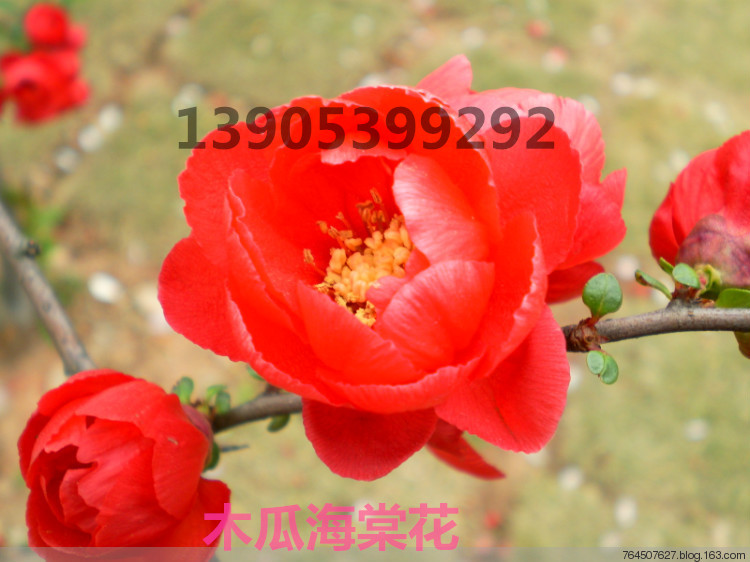 皱皮木瓜Chaenomeles Speciosa(Sweet)Nakai,属蔷薇科,木瓜属,落叶、半常绿灌木。适生于温带,喜阳,稍耐阴,有较强的抗寒、耐旱和抗病虫能力,微酸、微碱性土壤均能适应,以肥沃疏松、灌溉便利、排水良好的沙质壤土为宜。皱皮木瓜花蕾繁多,色彩艳丽,花形、花色多样,花色大红、粉红、