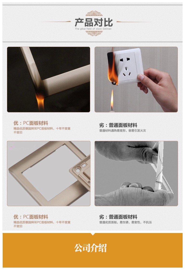 开关通过最新标准GB16915.1-2003,插座通过最新标准GB2099.1-2008、GB1002-2008,产品3C证书覆盖全面,开关从一开到四开,插座从10A到16A。本公司承诺开关插座使用期为12年(电子产品除外)。系列产品为家装、酒店、宾馆装潢首选,也是市场最畅款产品,质量十分稳定,保持性价比的优势迅速打开市场。