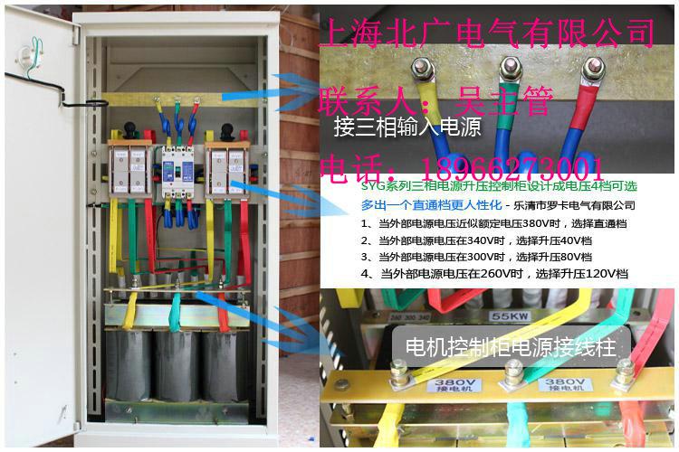 电源电压升压控制柜包括单相和三相电源升压控制柜,现已批量生产供应新疆代理商和客户,产品质量稳定可靠,深受客户爱戴,升压柜代理咨询及订货电话:【吴经理/189-6627-3001】